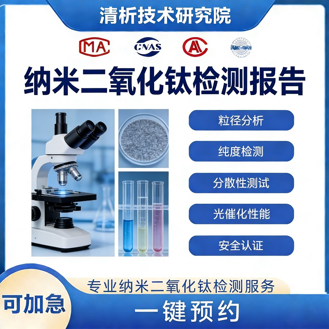 清析技术研究院可提供纳米二氧化钛相关的成分检测,含量检测,纯度检测,光催化性能测试,荧光测试,比表面积测试,循环伏安测试,XRD测试等检测服务,可提供CMA/CNAS资质的检测报告,是专业的第三方检测机构。详情可联系我们进行咨询,关于纳米二氧化钛检测的部分内容介绍如下: